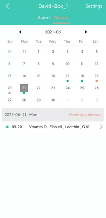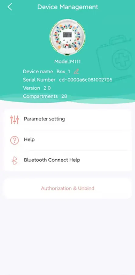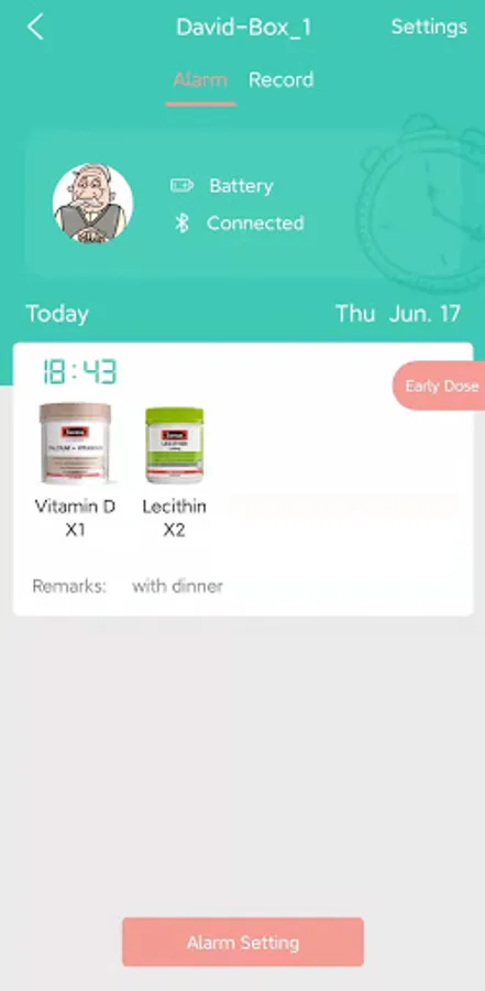 Healthcare software for automatic pill dispenser, including the function of alarm setup, device management, dosing history, etc