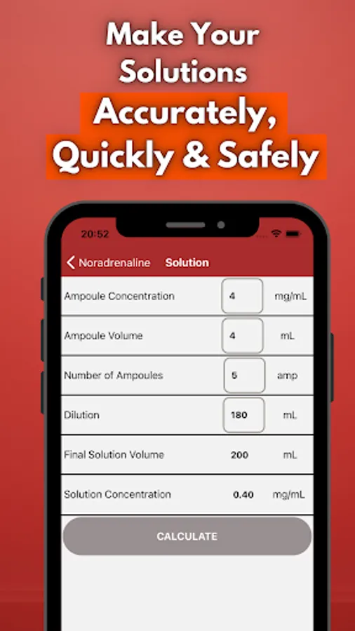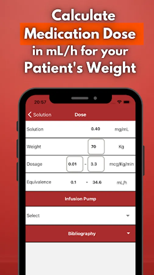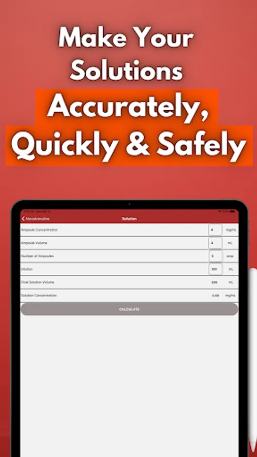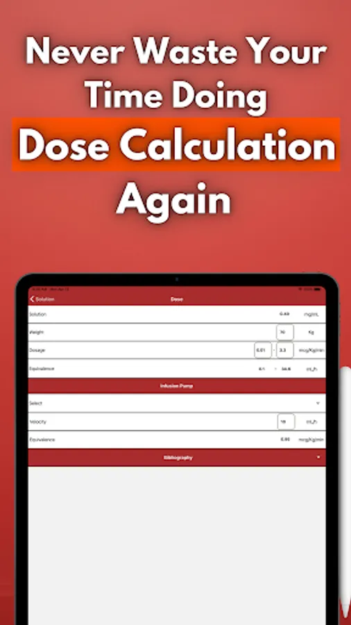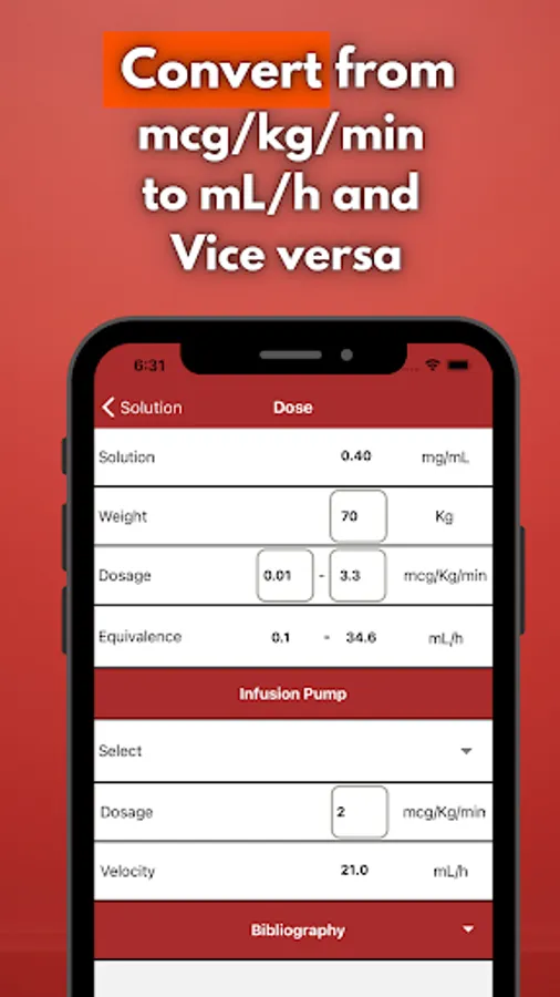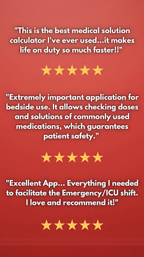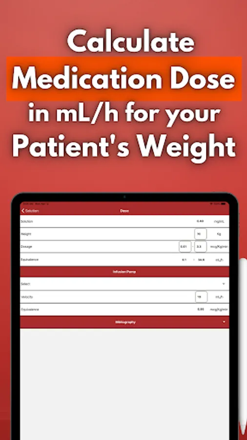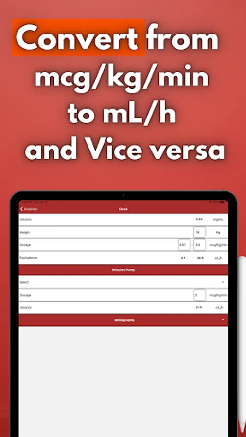 This application was made by doctors to facilitate the day-to-day of the professional who works in urgency, emergency, intensive care or with critically ill patients and need to calculate the concentration of the solutions used and infusion speed quickly. The application has a suggested standard solution based on the schemes most used in intensive care services.