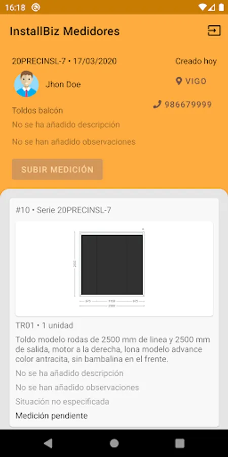 Meter tool complementary to the Installbiz service to carry out the measurement on site.