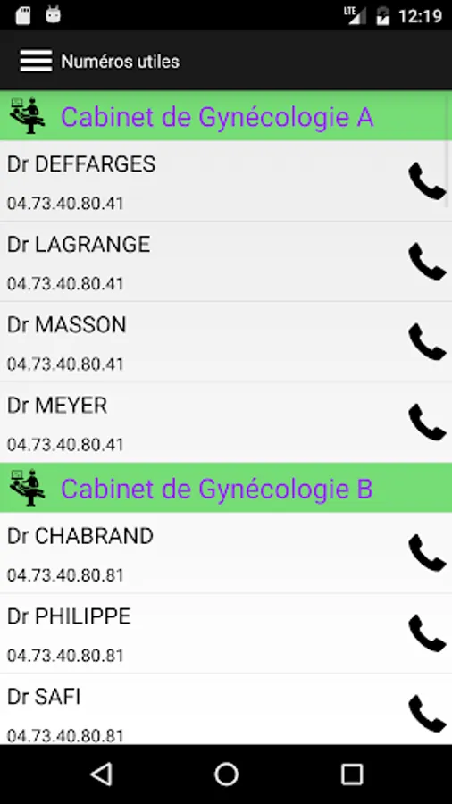 -a list of useful numbers of the institution (maternity secretariat, doctors ..) and numbers to call in case of emergency.