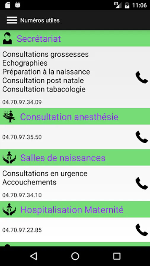 -a list of useful numbers of the institution (maternity secretariat, doctors ..) and numbers to call in case of emergency.
