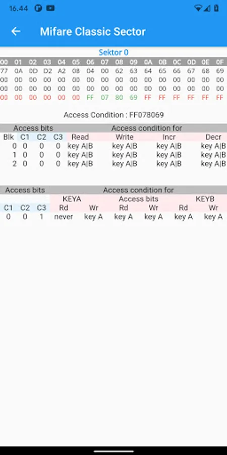 Display all Block in binary view. you can check the access condition block to see what you can do with this mifare classic card.
