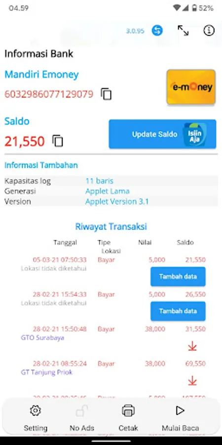-Mandiri e-money/e-toll (Old Applet and New Applet)
