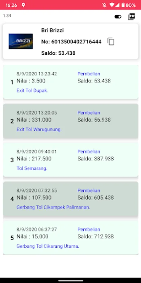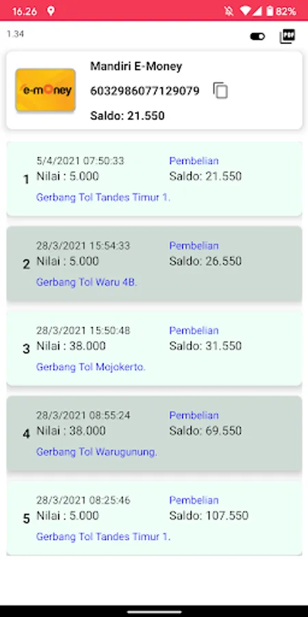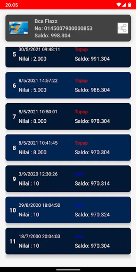 This app reads Bank prepaid card balance and history. As for those supported, among others.