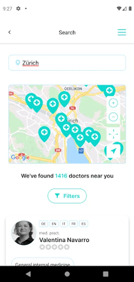 Search mobile for doctors, dentists or therapists