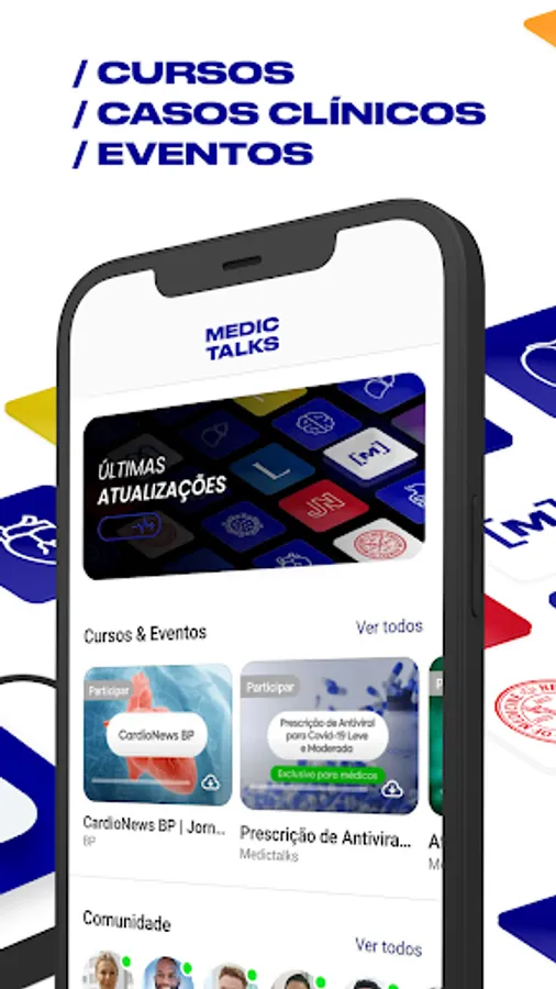 In the Medictalks app you have access to a community made up of health professionals from across the country. Get access to exclusive content, courses and events. All this with unlimited access and completely free. And still interact and share knowledge with colleagues in the safe and trusted environment.