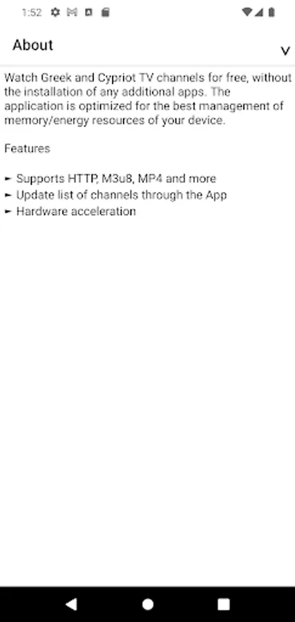 Watch Greek and Cypriot TV channels for free, without the installation of any additional apps. The application is optimized for the best management of memory/energy resources of your device.