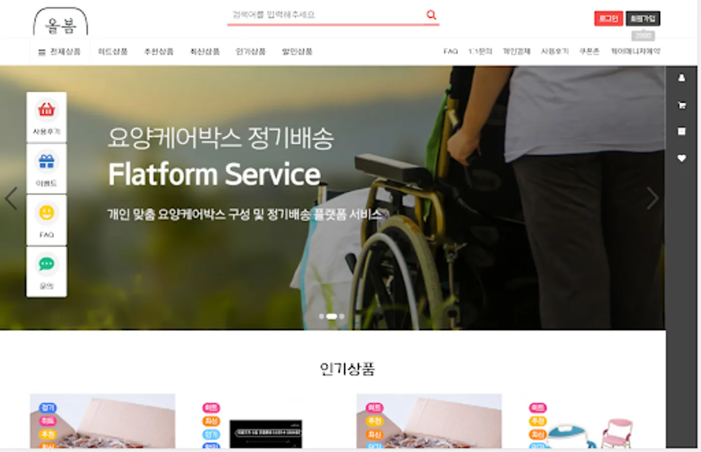 올봄-개인맞춤 요양케어박스 구성 및 정기배송 플랫폼 서