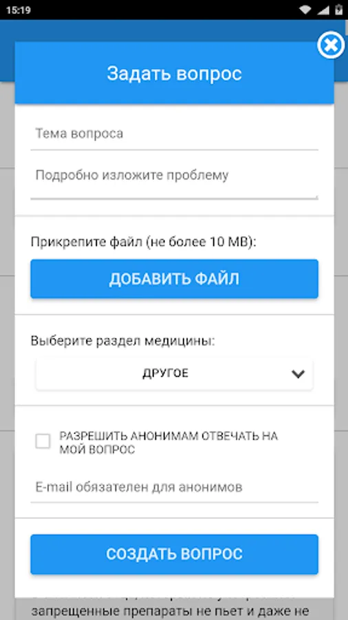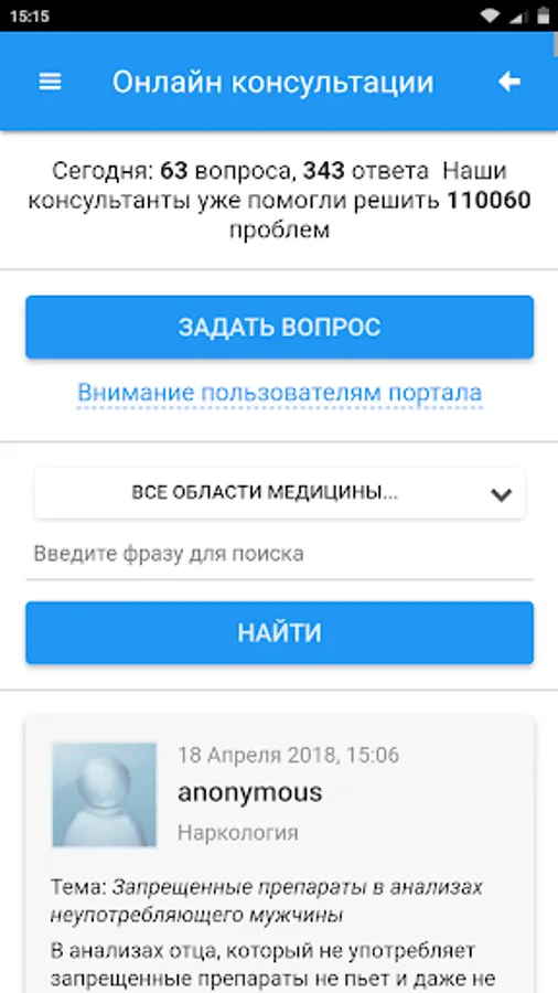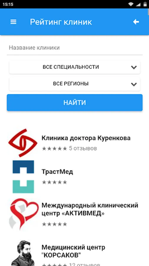 Mobile application for: online consultation with specialists, Search and selection of clinics Medihost.ru portal, the ability to post reviews of the honey. institutions and read them from other people
