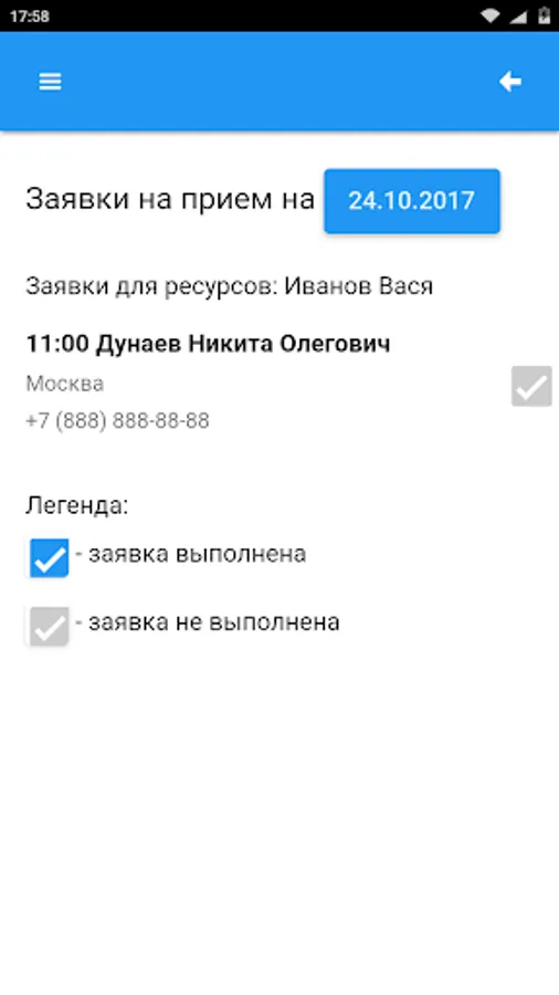 At the reception of clinic schedules are, the doctor on the phone affix a mark that the service provided.