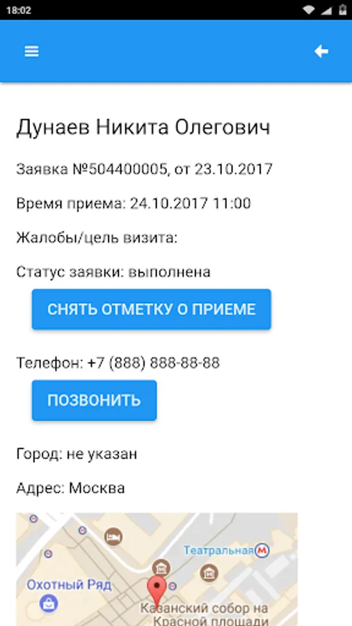 The application allows the doctor to view the current application, to optimize the route based on the map with the address of patients stamped for admission.