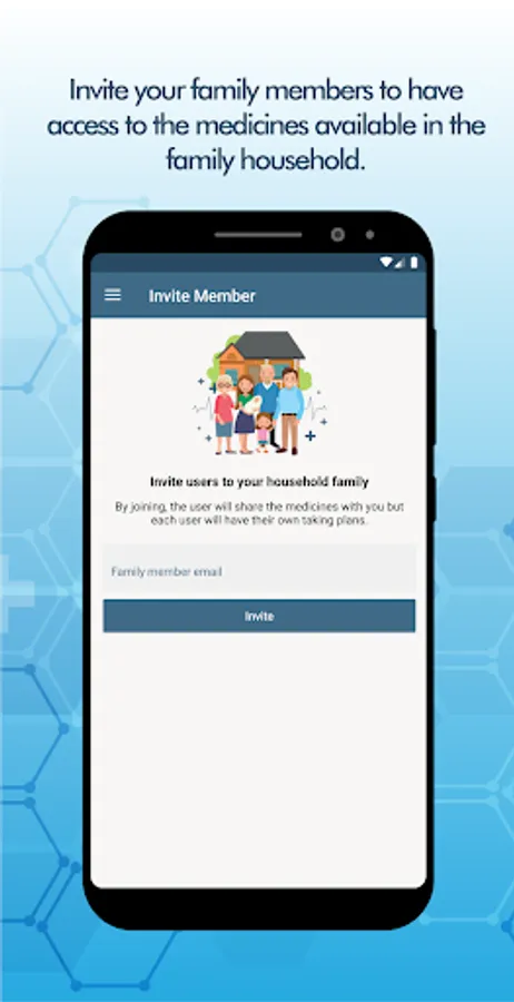 4. Invitation System: Users can invite new members to join the household within the app. This feature is useful for adding new family members, caregivers, or anyone responsible for medication management.