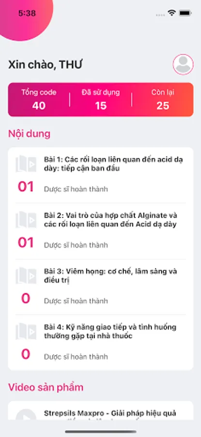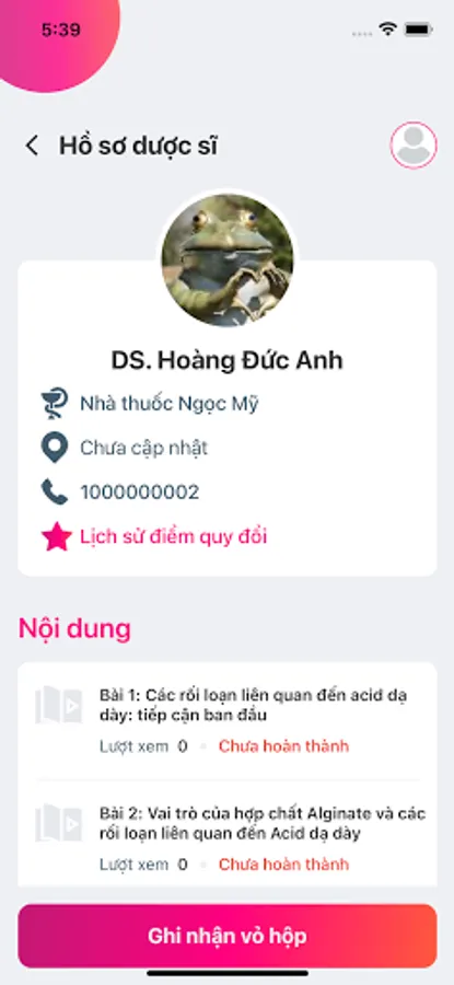 - Information about the pharmacist's redemption points when completing professional lessons