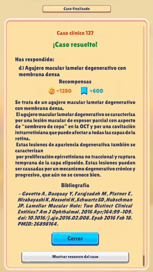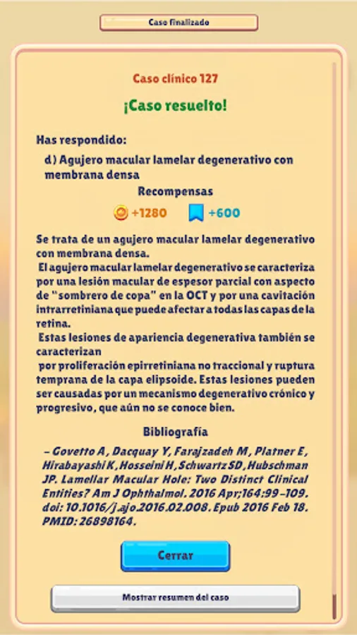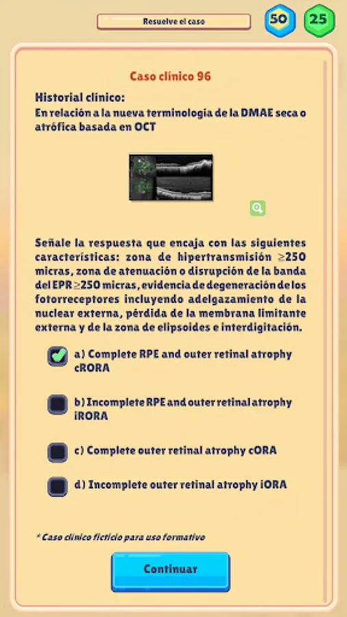 After the pandemic, medical training and more specifically in ophthalmology has been relegated to repetitive webinars and online courses. We present a totally different approach based on gamification. Compete in an entertaining contest while updating your knowledge in different areas of ophthalmology through more than 300 original clinical cases. After completing the course and taking the relevant exam, credits will be obtained.