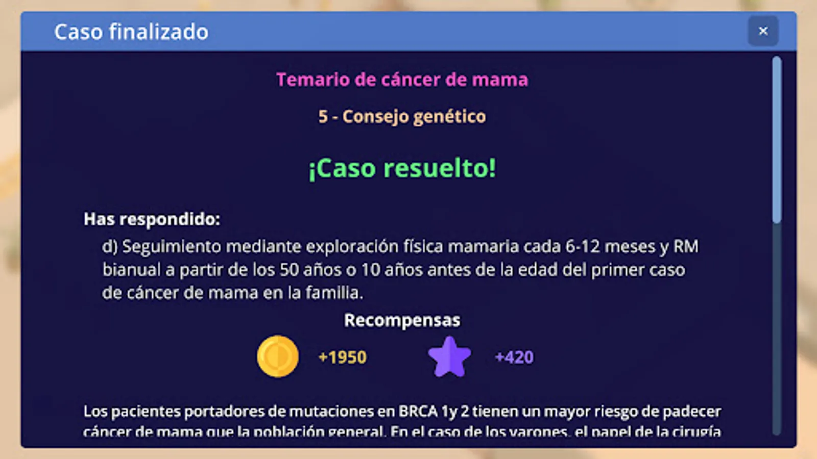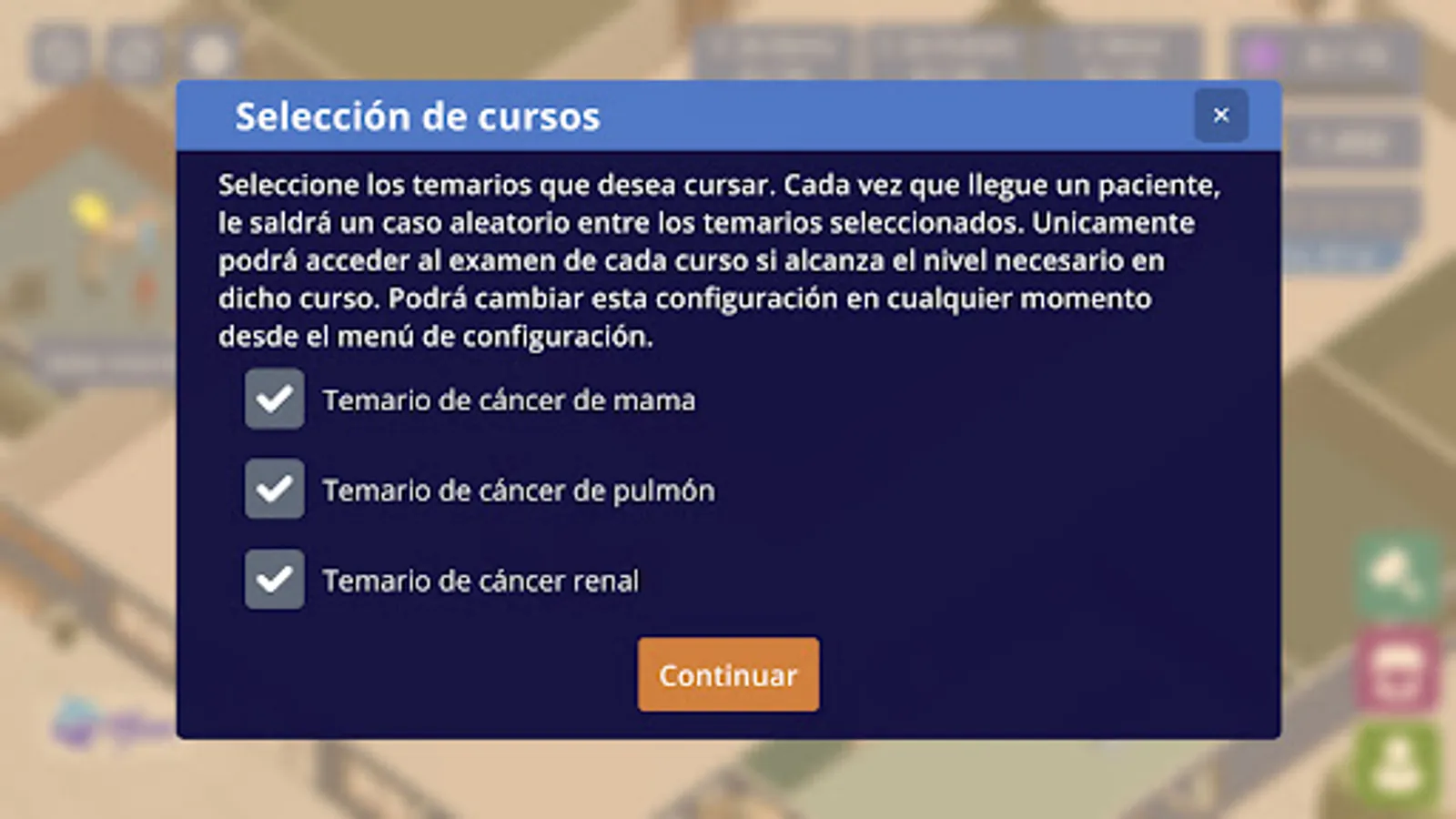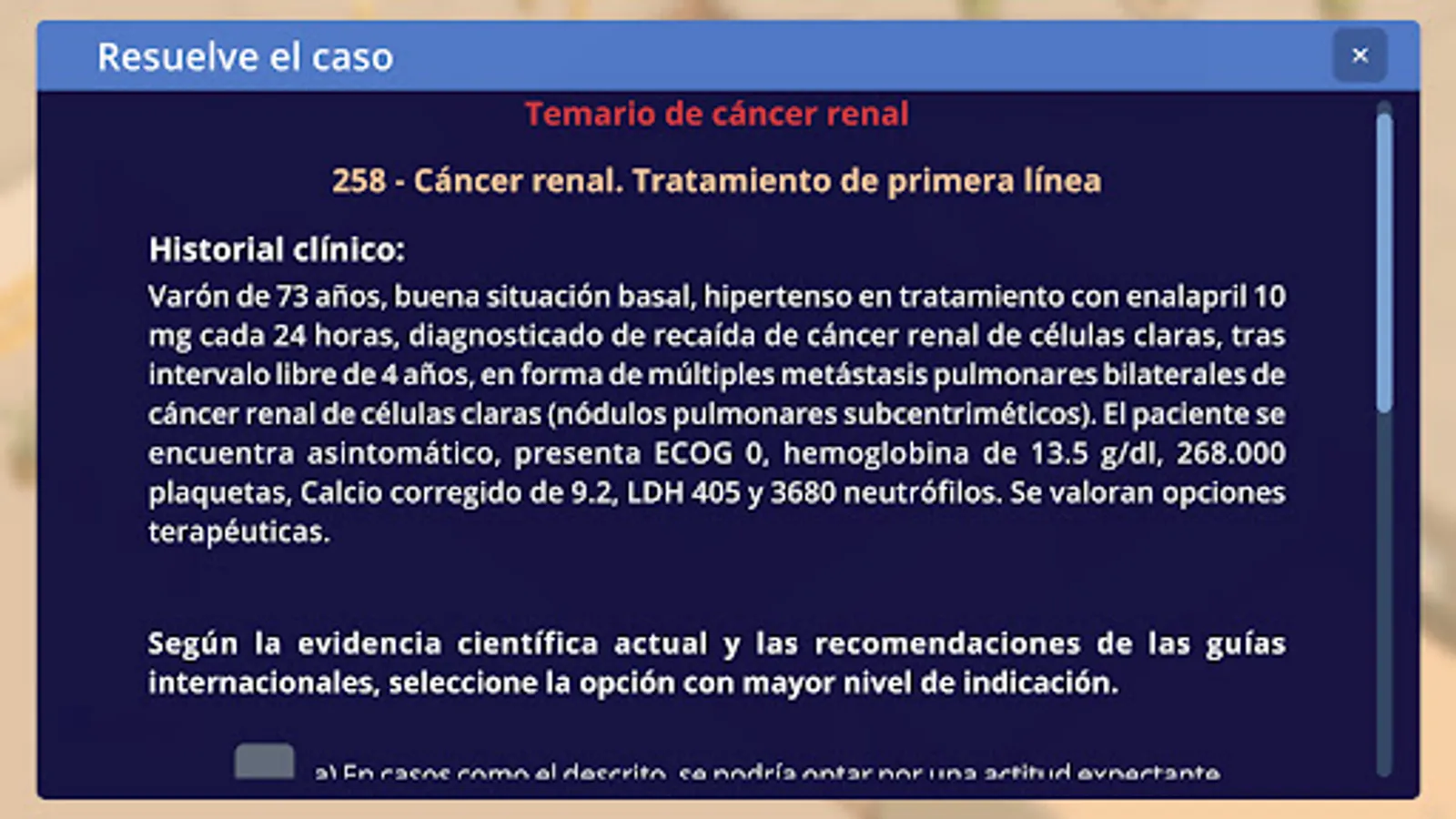 Due to the current pandemic, medical training and more specifically in oncology has been relegated to repetitive webinars and online courses. We present a totally different approach based on gamification. Build your own clinic while updating your knowledge in different areas of oncology through more than 300 original clinical cases distributed in 3 courses.