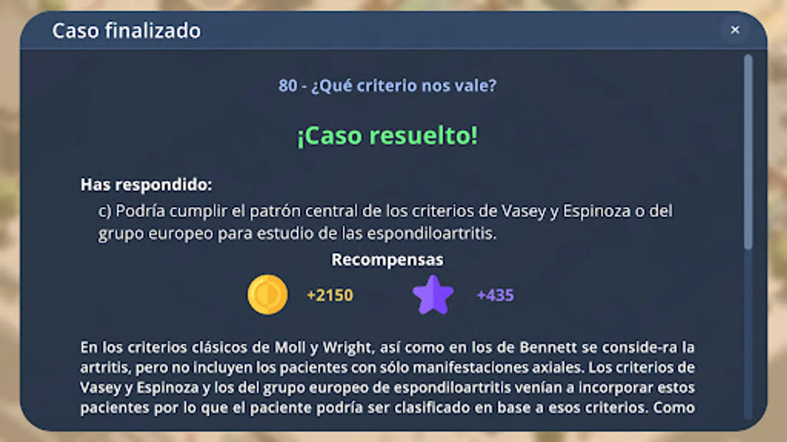 After the pandemic, medical training and more specifically in rheumatology has been relegated to repetitive webinars and online courses. We present a totally different approach based on gamification. Build your own clinic while updating your knowledge in different areas of rheumatology through more than 300 original clinical cases. After completing the course and taking the relevant exam, credits will be obtained.
