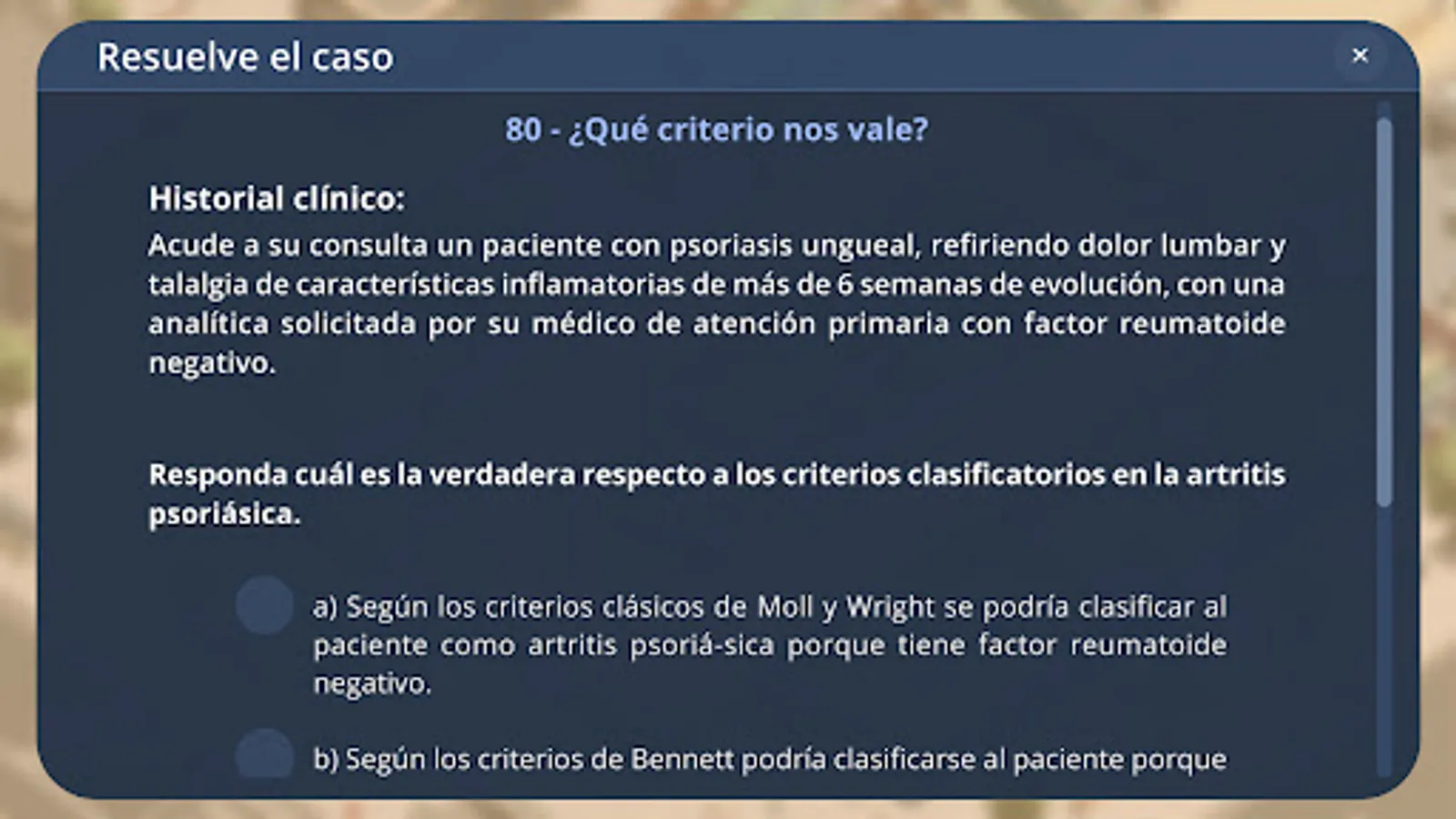 ReumaGame is an app for training in rheumatology. Requires login identifying yourself as a rheumatologist.