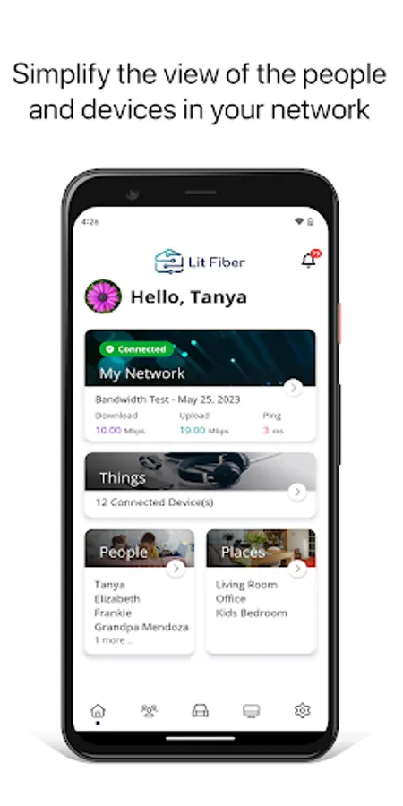 MyLitFiber is the ultimate mobile application for subscribers to control their home Wi-Fi network. Manage your network by setting priorities, utilizing parental controls, and protecting your home with security features. Take control with device management, testing your speed, and viewing all connected devices.