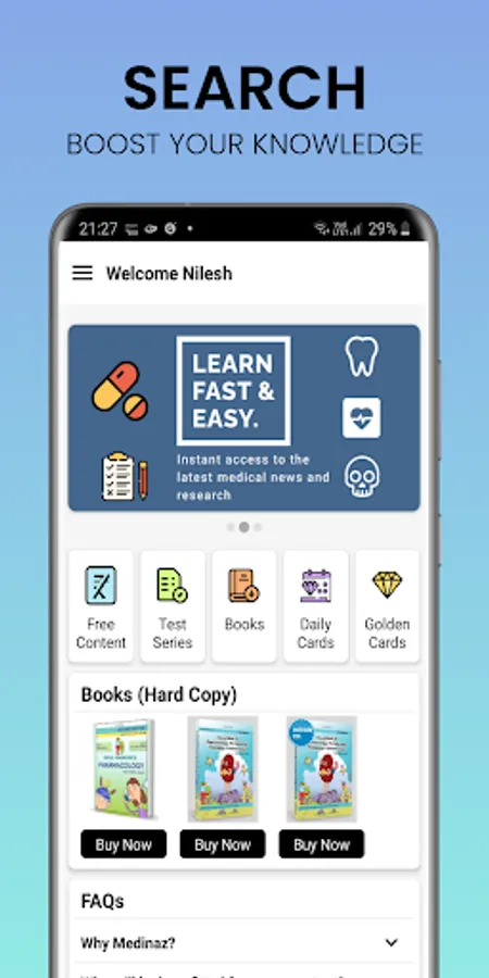 The foremost purpose of this App is to augment your preparation for exams like, USMLE, NBDE, NEET-PG, FMGE, AIIMS-PG, NCLEX, and NEET-MDS.