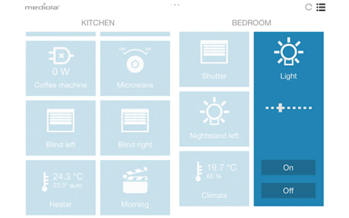 mediola® IQONTROL is the ultimate and easy to use Smart Home App for consumers to control & automate their homes using our powerfull mediola® a.i.o. gateway (Series 4 and 5) which supports and unifies many brands and devices.