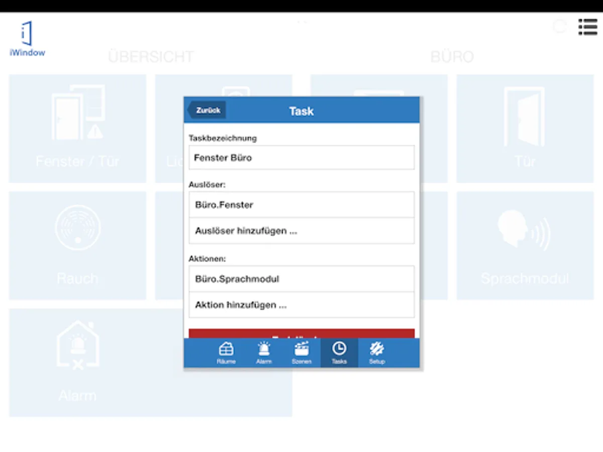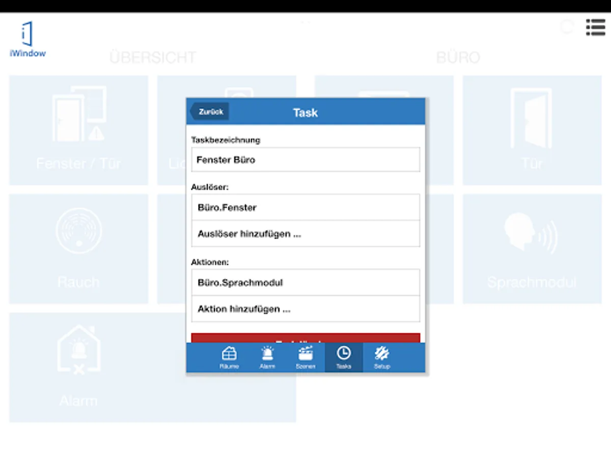 Programming the remote sites is very easy. For the different transmitter or receiver, there are predefined tiles. These are automatically assigned to a pre-defined space when teaching. After the tile opening the switching possibilities are shown. In the various rooms to get by wiping command.