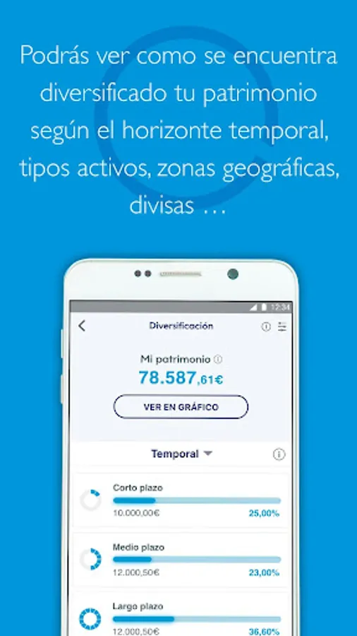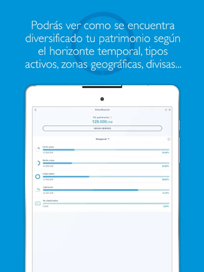 - Visualize the diversification of your financial assets according to the time horizon, geography, distribution of assets, etc.
