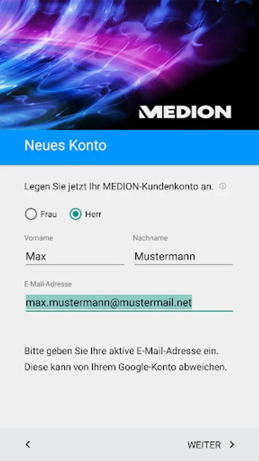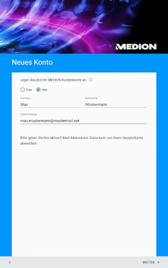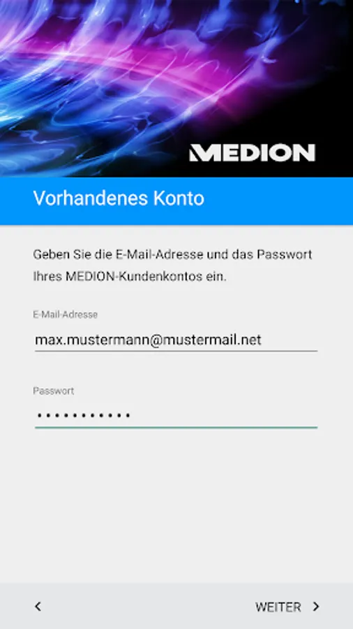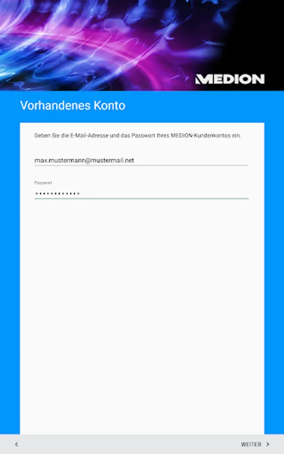 Some apps for MEDION products require the MEDION customer account. Therefore, install this app when prompted and follow the instructions on the screen.