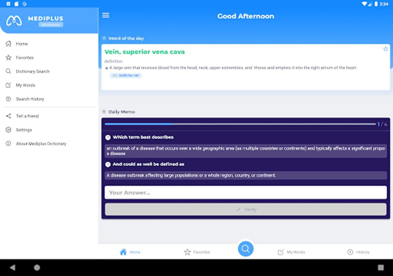 Mediplus Dictionary equally goes one step further to help you learn these terms through interactive quizzes, aka Daily Memo.