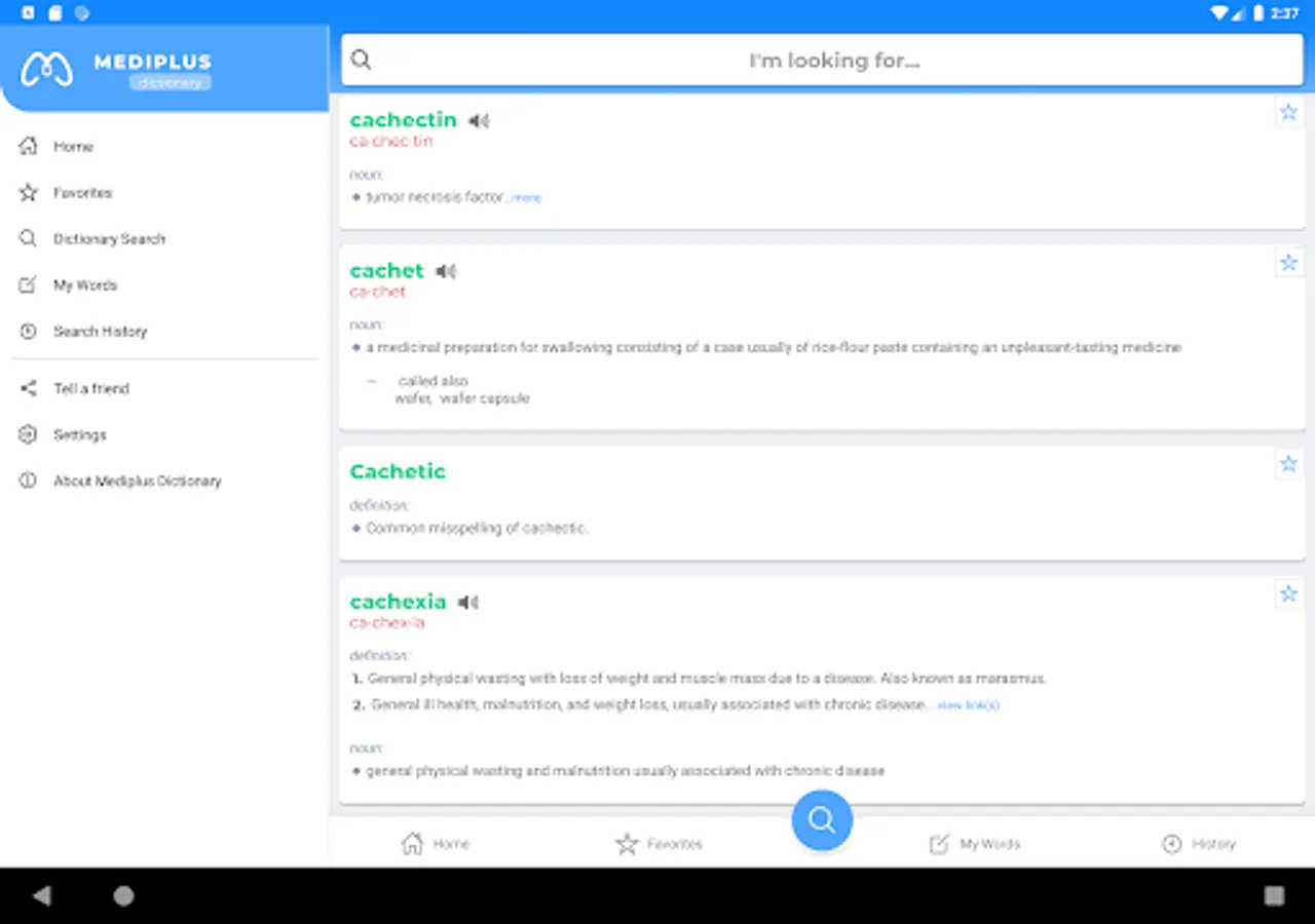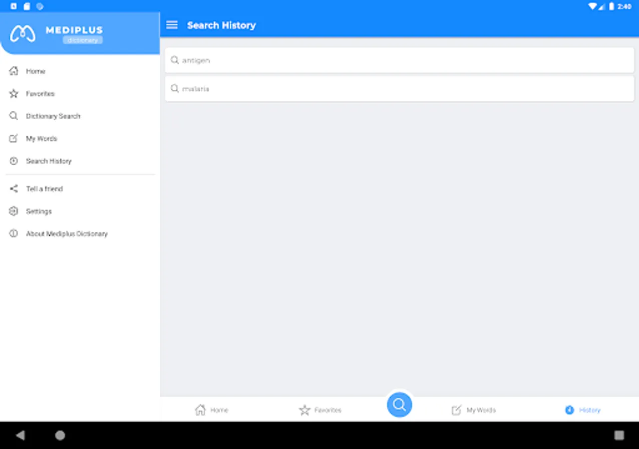 Mediplus Dictionary is an offline medical dictionary that allows you to gain access to the definitions of almost all medical terms for free and from reliable sources alongside their pronunciations, syllabification, possible translations into other languages (currently via google translate), synonyms and example usages.