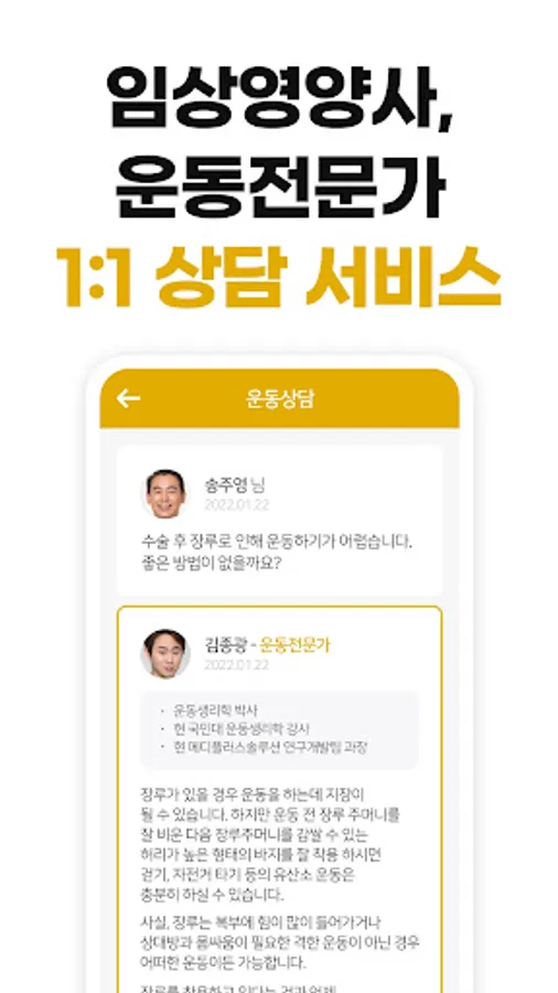 • Expert Counseling: Solve your doubts through one-on-one counseling with exercise and nutrition experts.