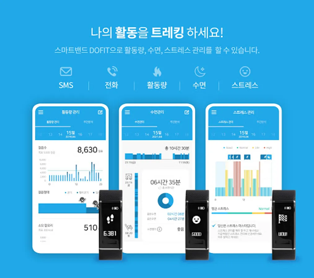 • You can enjoy various experiences including receiving SMS and calls by connecting the Dofit band.