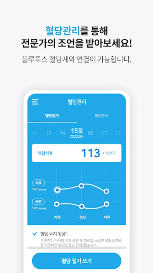 • Blood glucose management: You can create and manage a blood glucose diary directly or through a Bluetooth glucose meter.
