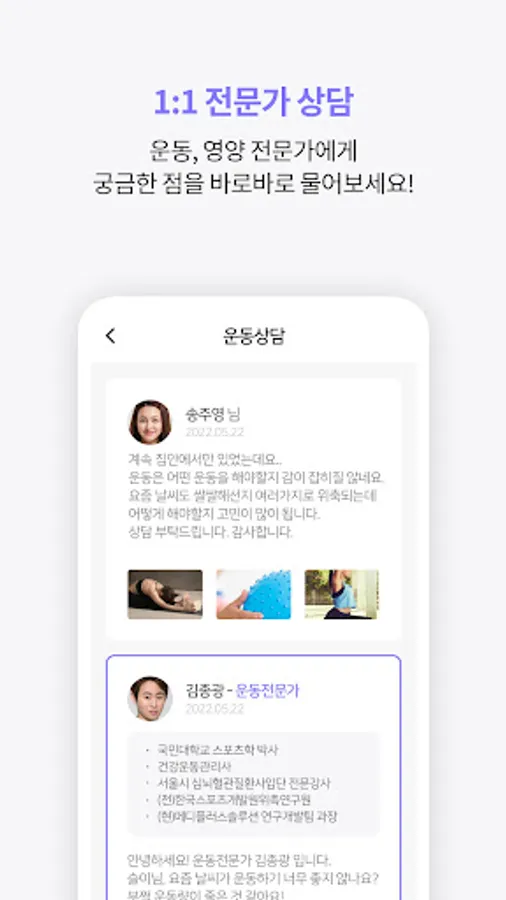 • Expert consultation: Resolve your questions through 1:1 consultation with exercise and nutrition experts.