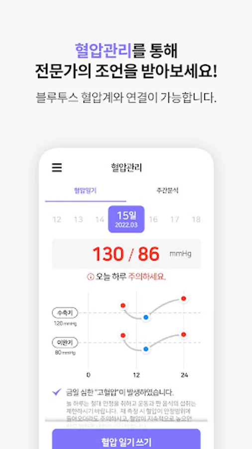 • Blood pressure management: You can create and manage a blood pressure diary directly or through a Bluetooth blood pressure monitor.