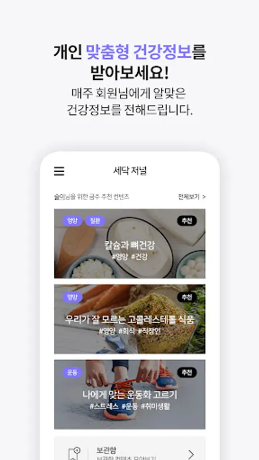 • Second Wind does not provide single-information guides. By analyzing the user's condition in multiple directions, such as disease history (underlying disease), gender, age, and body information, we provide customized services suitable for chronic diseases and obesity.