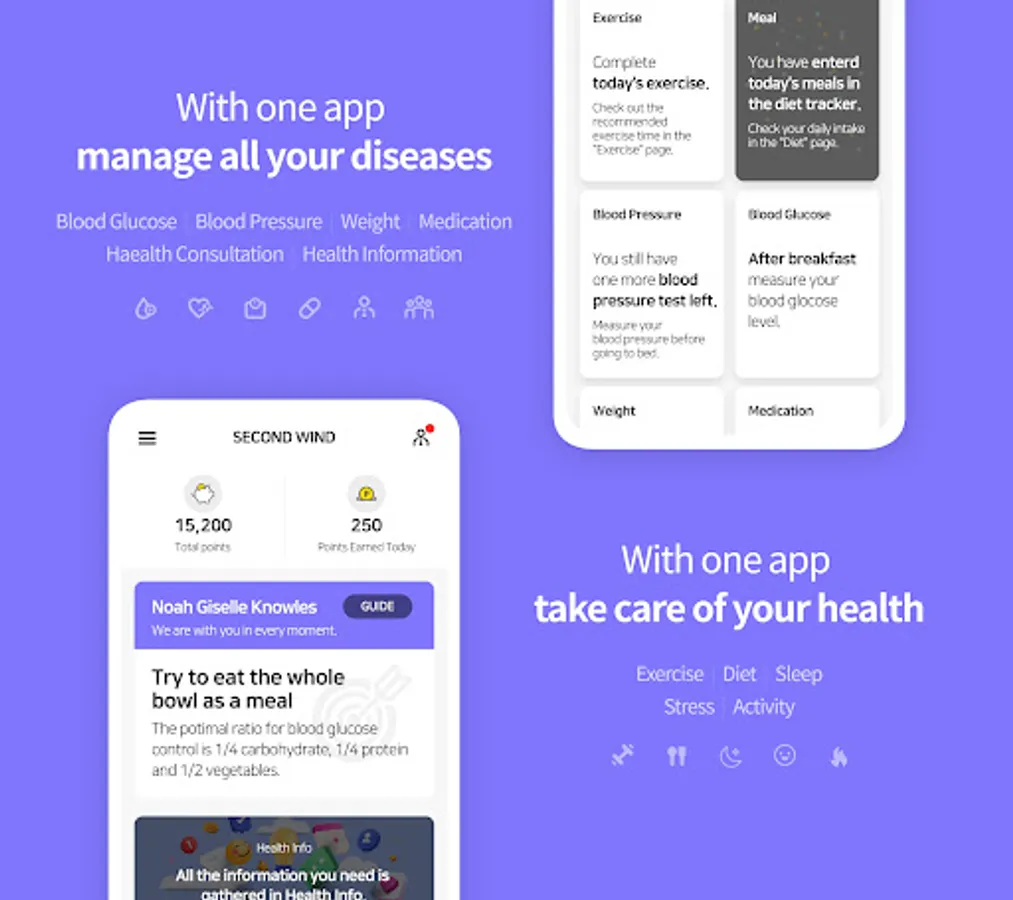• Second Wind does not provide a guide based on a single piece of information. It provides personalized guides designed for those with chronic conditions and obesity by analyzing their health conditions reflecting various factors such as medical history of underlying diseases, gender, age, and physical information.