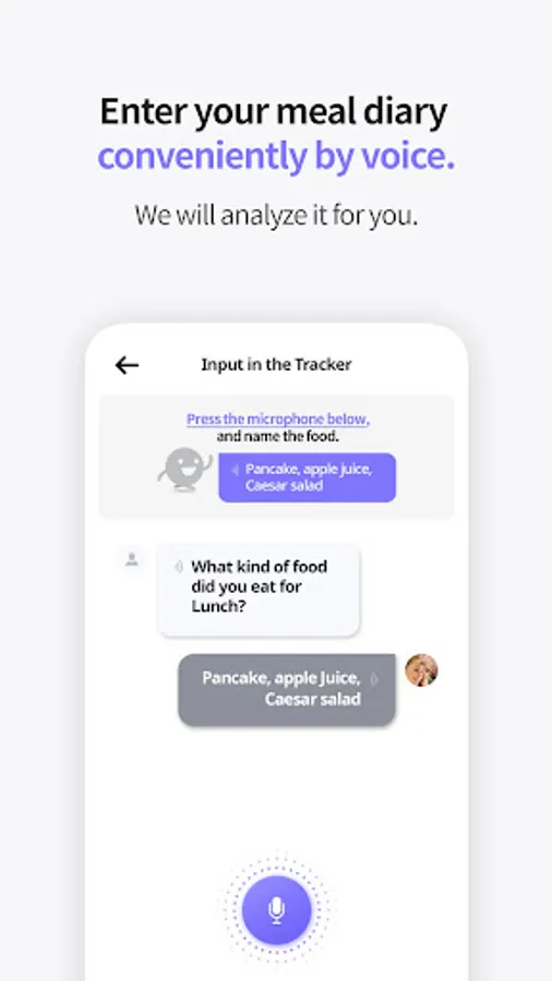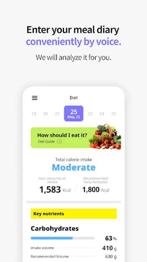 • Diet management: Write a simple diet diary and you will get a report of your eating patterns and nutrition analysis.