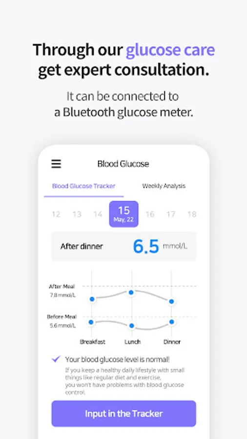 • Blood glucose management: Write blood glucose diary either manually or using a Bluetooth blood glucose meter to manage it.