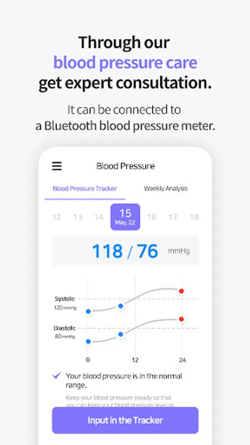 • Blood pressure management: Write blood pressure diary either manually or using a Bluetooth blood pressure meter to manage it.