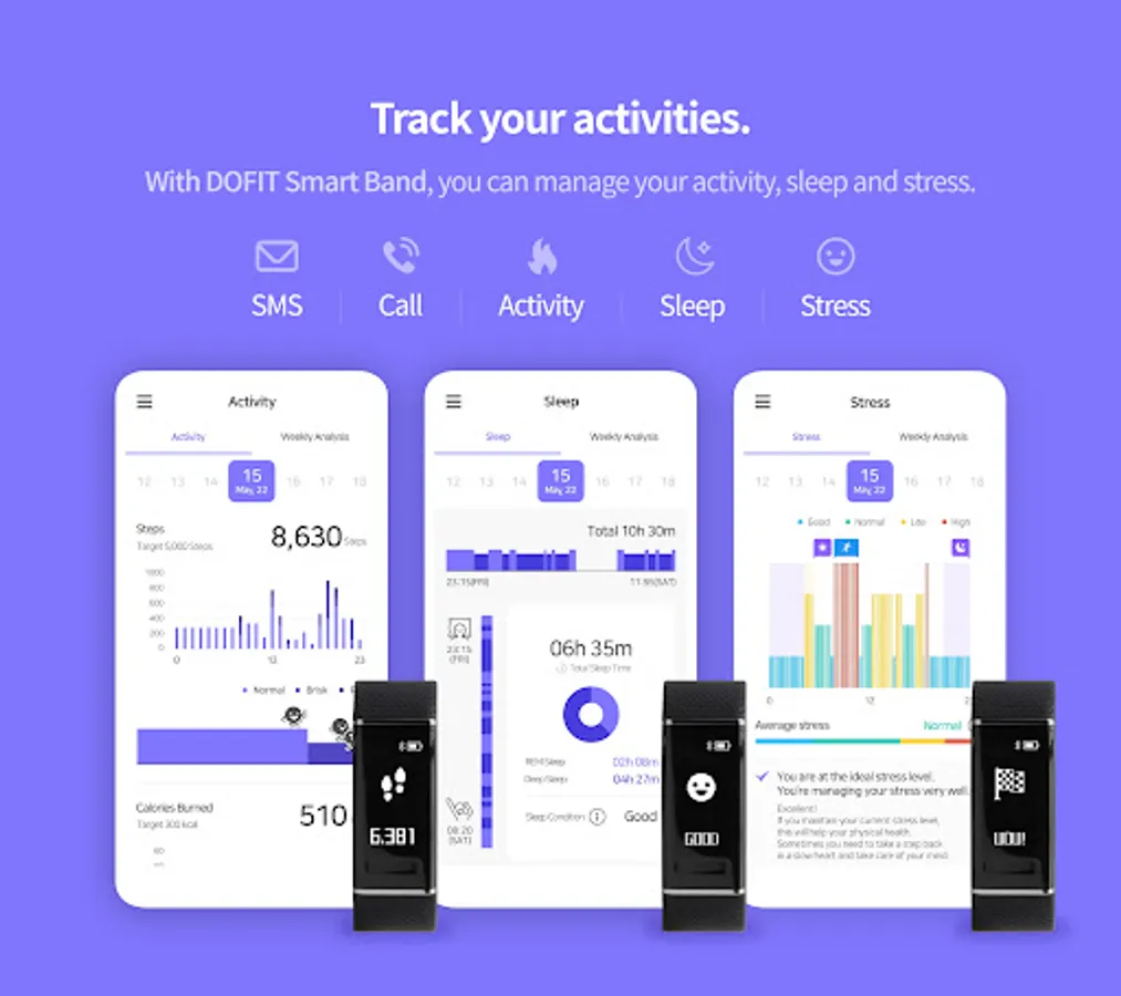 • Activity Management (with DOFIT Band): Use DOFIT band to check your steps, calories burned, heart rate and try to achieve your goals.