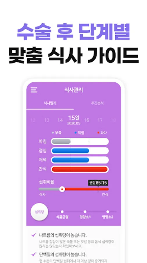• Meal Management: Create a meal diary quickly and easily! It is evaluated through eating pattern and nutrient analysis.