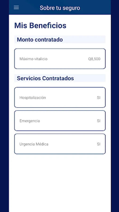 Check the benefits of your policy, remember that for more information you can contact the phones on the contact screen.