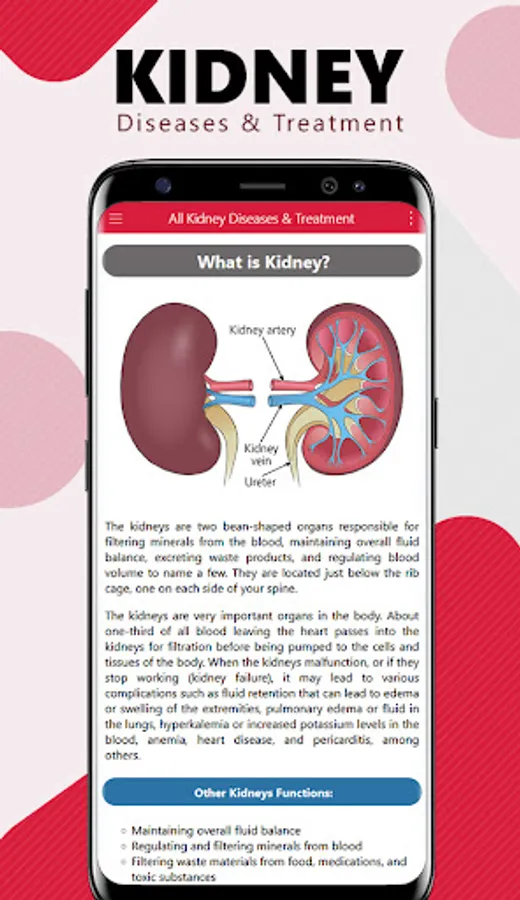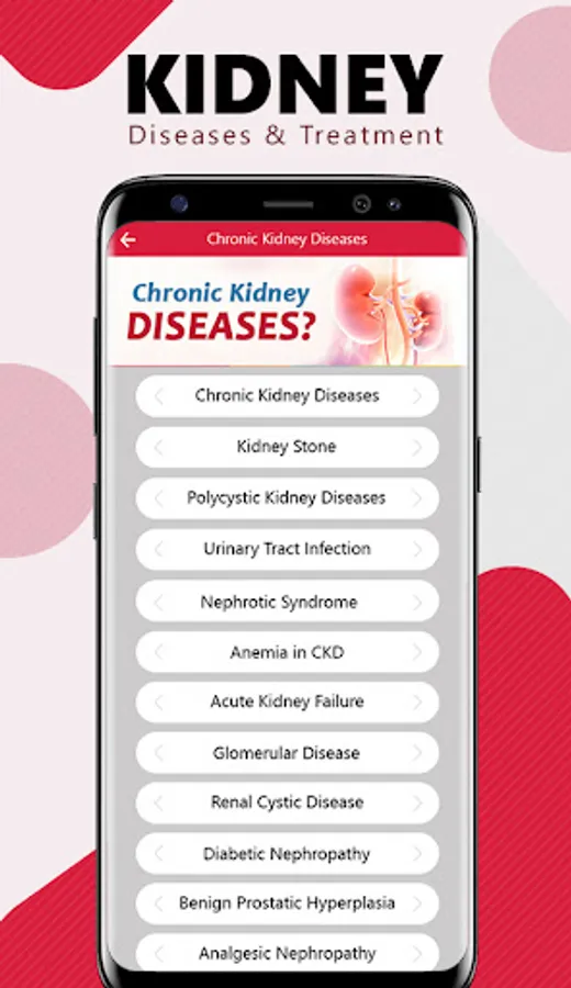 In other worlds this renal diseases app provides you the details about the kidney disease, its types, symptoms, diagnoses and its treatment for your references. So please read it carefully.