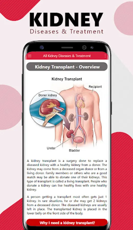 Renal Diseases & Treatment aims to bridge the gap between patients and healthcare providers, fostering a more proactive and informed approach to managing Chronic Kidney Disease. By empowering individuals to take control of their health and fostering a sense of community, the app strives to improve the overall well-being and long-term outcomes for those living with CKD.