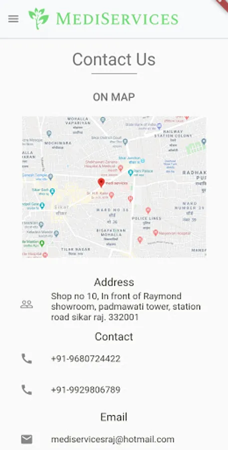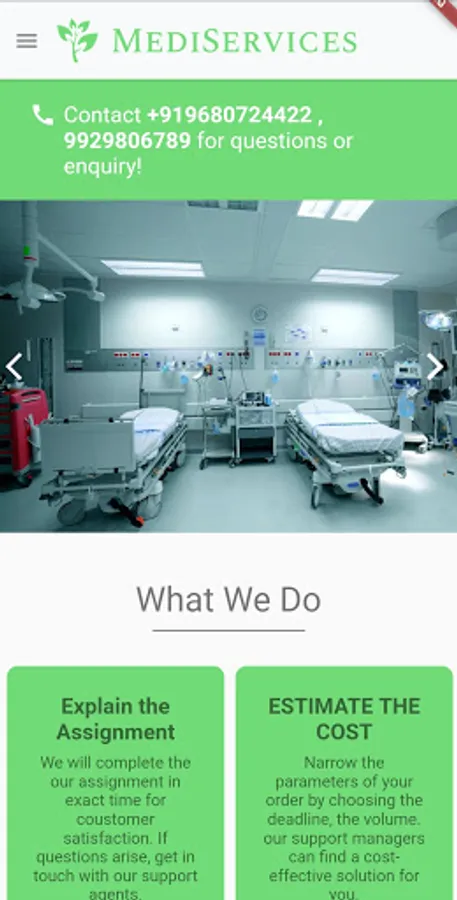 MediServices is an application to share about a hospital's services and info.