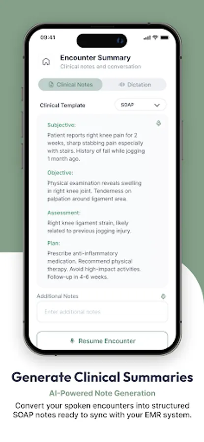 Generates concise, well-organized summaries and SOAP-style notes tailored to clinical needs.