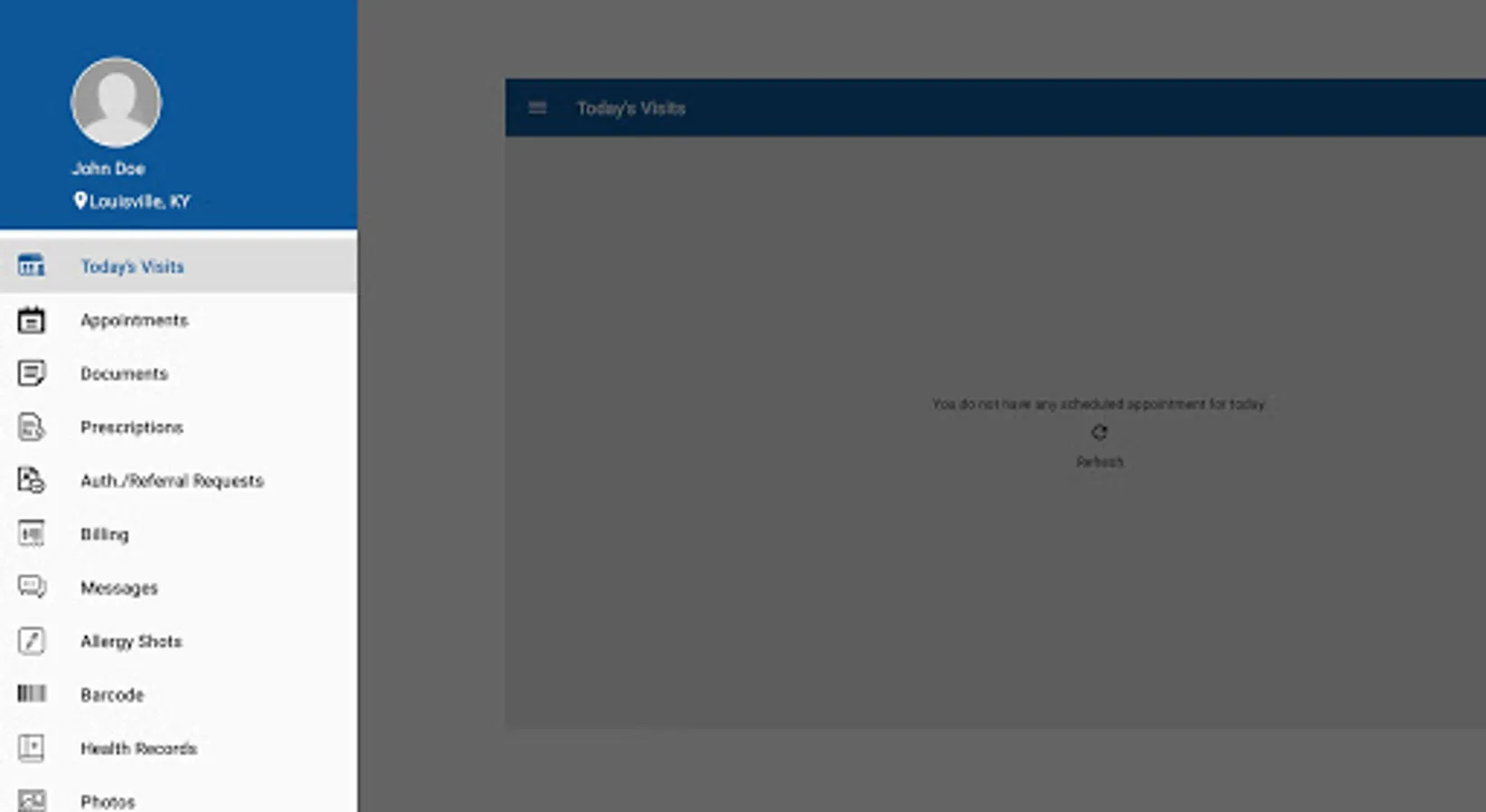 • Today’s Visit: View the current day appointment details, check in with the QR code or proximity beacons, verify demographics, sign forms, and also pay bills