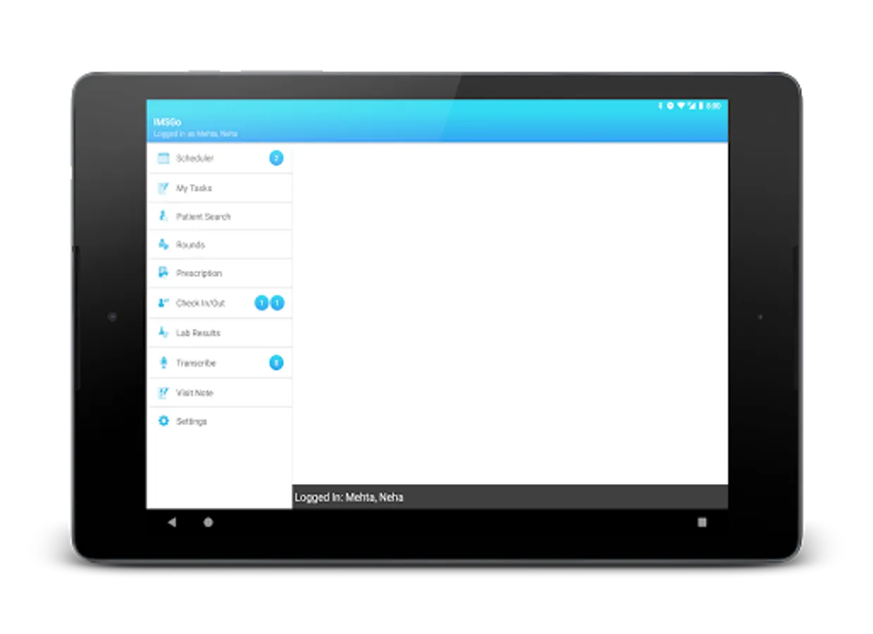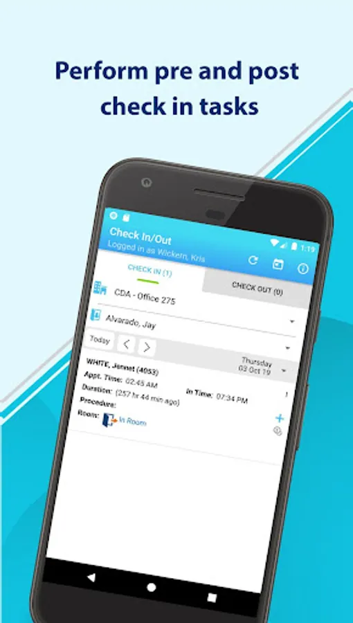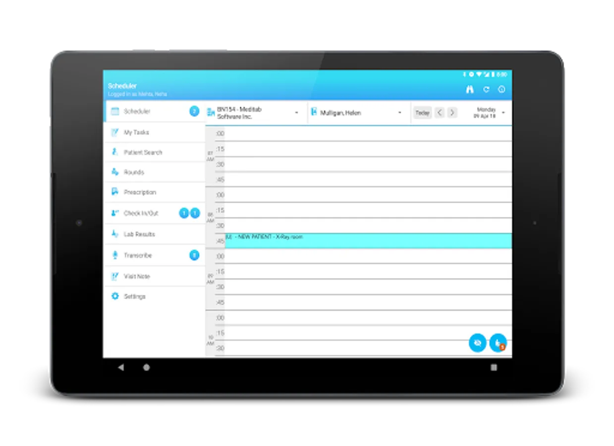 * Check-in/out: Check-in/out any scheduled patients, dictate visit notes, record patient vitals, change visit status, assign rooms, view patient details, record, upload transcriptions, enter check-in notes, create superbill