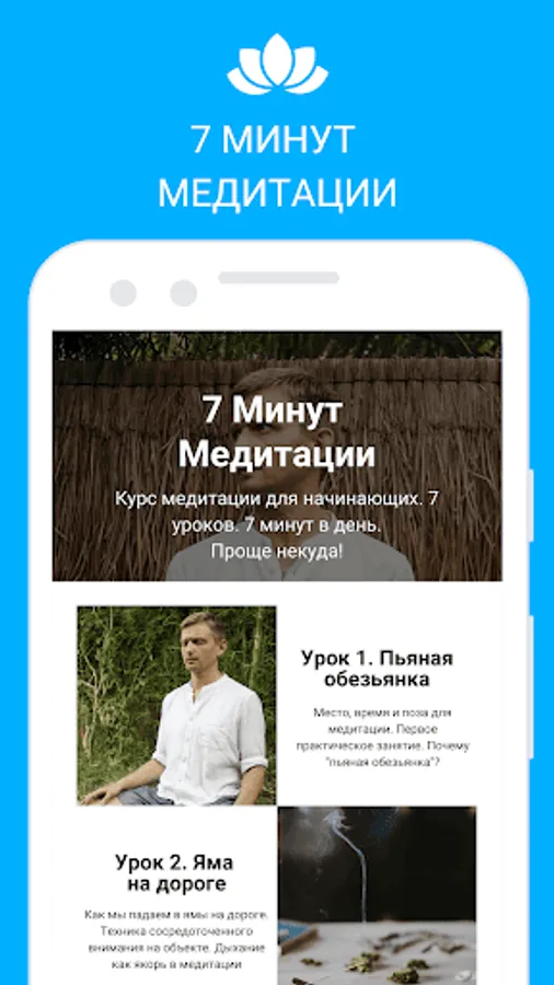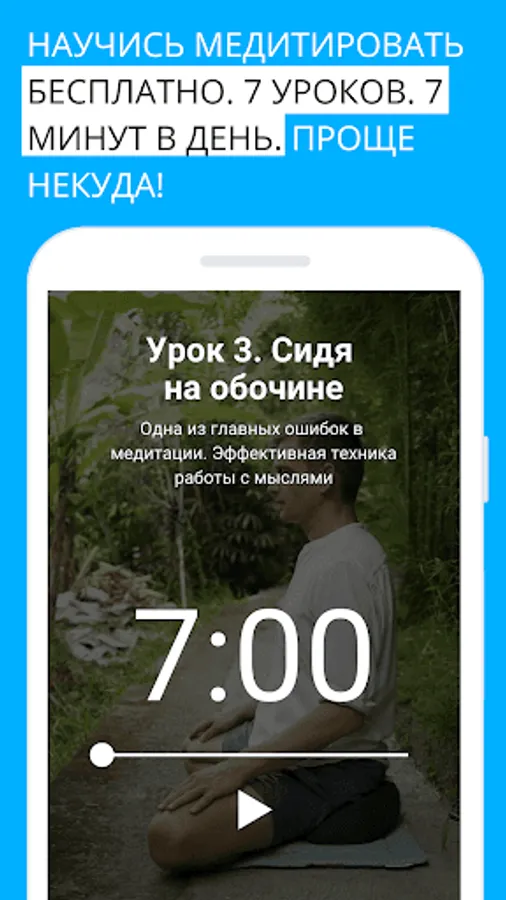 Practices of meditation on breathing and awareness for beginners with lessons in Russian. Do not know how to meditate correctly and where to start, and want to learn? Download the Meditation for Beginners 7 app and course and learn how to meditate for free.