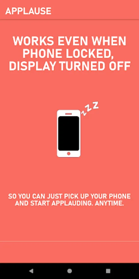 1. Works even when your phone is locked & the display is off. So no more unlocking your phone, searching for a app, launching it & then finding that play button just for a sound effect. Just pick up the phone & clap normally with phone in hand & the app plays the applause sound effect for you.